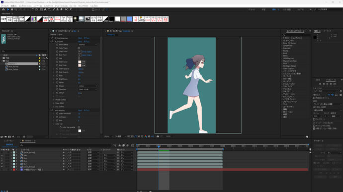 After animating, I exported the sequences as PNG files and imported them into After Effects. There, I added depth to the colors and applied Anti-Aliasing to smooth out the sprites.