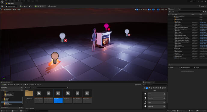 I used Unreal Engine 5.2.1 instead of Unity because it allows me to implement animated Normal maps on the character sprites to better capture the light from the environment.